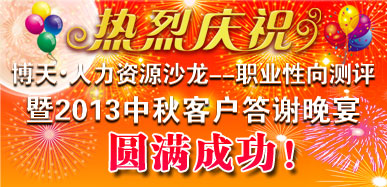 热烈祝贺博天·HR沙龙--职业性向测评暨2013中秋客户答谢晚宴圆满成功