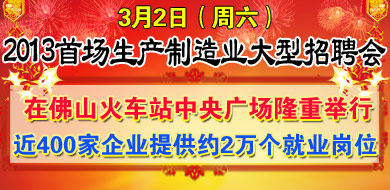 3月2日佛山智通腾盛2013首场生产制造业大型广场招聘会