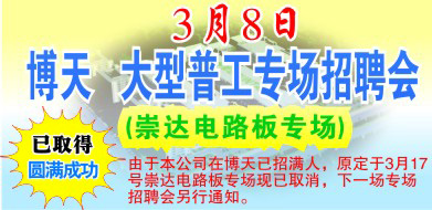 3月8日,博天·崇达电路板大型普工专场招聘会取得圆满成功