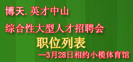 英才中山综合性大型人才招聘会3月28日在小榄体育馆隆重举行;参会企业300家
