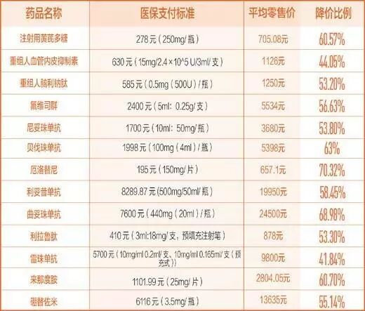 专利药、独家药谈判成功后价格大幅下降