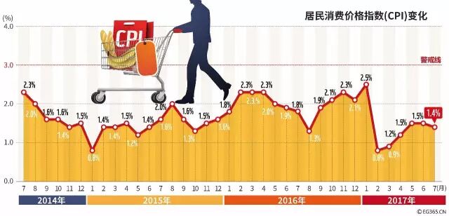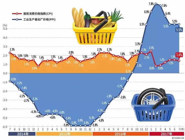 国家统计局今天发布数据,7月份全国居民消费价格指数CPI环比上涨0.1%,走势基本平稳;同比上涨1.4%,涨幅连续4个月维持在“1时代”。而工业生产者出厂价格指数(PPI)环比上涨0.2%,同比上涨5.5%。