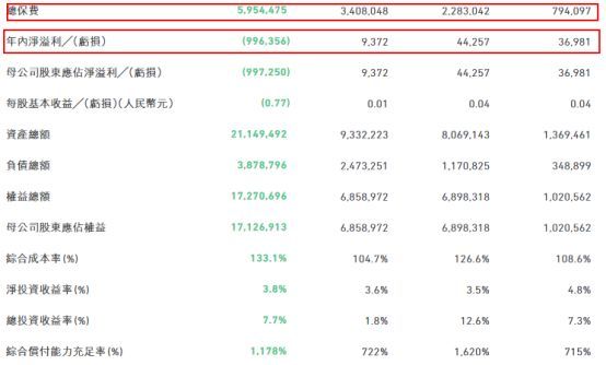根据众安在线发布的2017年年报显示,公司于2017年收取总保费约人民币59.54亿元,与2016年的34.08亿元相比,同比增长74.7%;2017年已赚保费净额达到了人民币46.141亿元,较2016年同比增长43.1%;但2017年净利润亏损约9.96亿元。